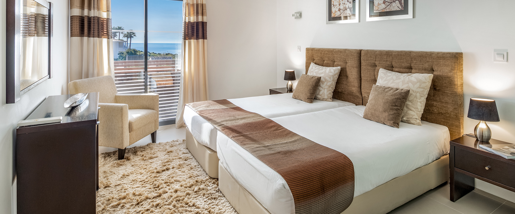 There are 2 bedroom apartments but without the sea view and in a different location that are called budget / economy. They are located on the -1 or -2 floor of the main building.